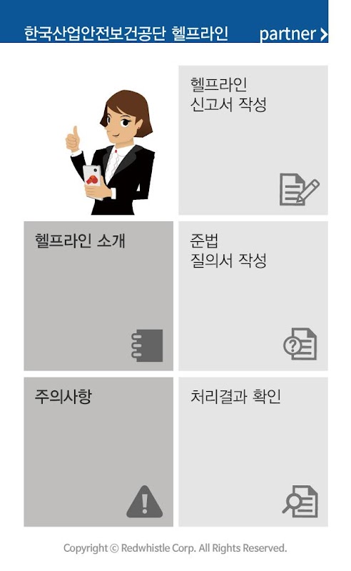 한국산업안전보건공단의 헬프라인 앱입니다.