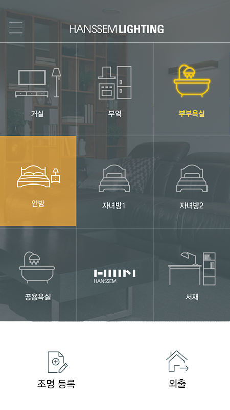 - 외출 기능을 이용하여 한 번에 다수의 조명 제어