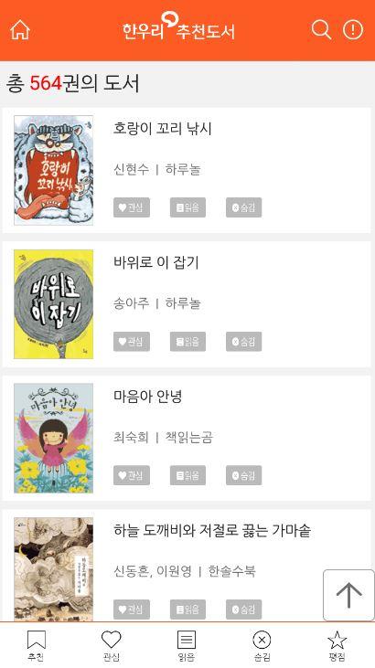 한우리추천도서앱 이용 시 불편한 사항은 구글플레이 한우리추천도서앱 리뷰에 남겨 주시기 바랍니다.