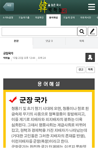 개념확인 및 용어해설은 물론, 놓쳤던 강의마저 다시 볼 수 있는 완벽한 한국사 관리 어플입니다.