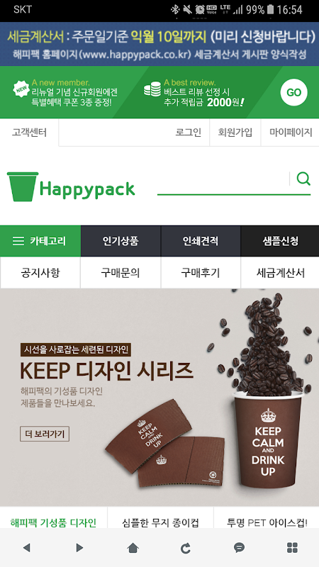 해피팩 - 종이컵 및 일회용 포장용기 전문 쇼핑몰 1.0.2