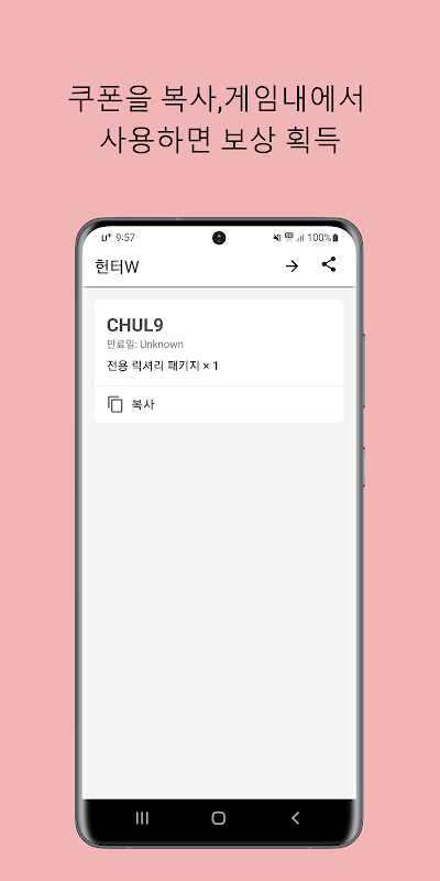 APKPure gebruikt handtekeningverificatie om virusvrije 헌터W 쿠폰 APK downloads voor u te garanderen.