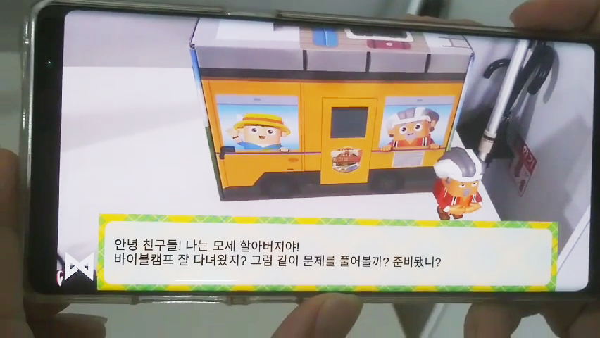 바이블 캠프 버스에 증강현실 앱을 켜고 카메라를 가져다 대면