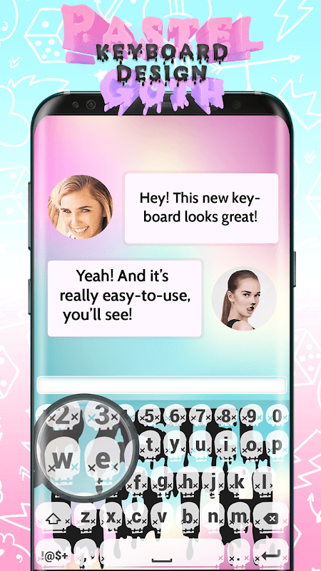 We are here to help you make your keyboard “creepy but cute” at the same time with our new “keyboard themes” app! And what will “decorate you keyboard” background in gothic lolita style better than our new “gothic keyboard”? So, if you adore pastel goth art, get our stunning keyboard with “pastel wallpapers” and “goth emoji”, install it and select your favorite “keyboard design”! This “goth emoji app” will make your day better and bring a touch of “pastel punk” to your phone. 🎀Pastel Goth Keyboard Design🎀 is one of the best “emoticon keyboard” apps and you’ll surely like it!