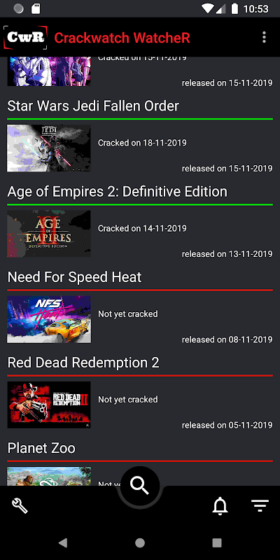 Onofficieel de beste app op basis van de API's van Crackwatch.com: zoek naar je favoriete pc-games, zet een crackwatcher op de crack-status, bekijk ongekraakte games, filter, stel pushmeldingen in, ontdek nieuwe games, controleer de beste deal en meer !