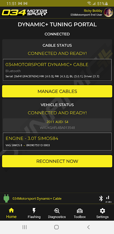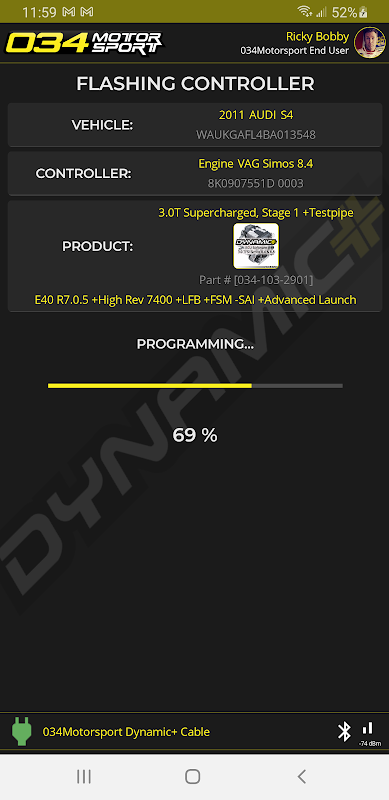 Met de 034Motorsport Smartphone Interface kunnen 034Motorsport-klanten hun auto's programmeren met Dynamic+ software. Het bevat ook handige functies voor diagnose, zoals datalogging, het lezen en wissen van foutcodes, evenals platformspecifieke tools en procedures.