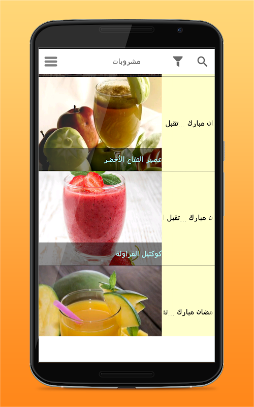 يقدم لكم التطبيق مئة من العصائر والمشروبات 2018، المنعشة والصحية.استفد من ألذ عصائر ومشروبات شهر رمضان المبارك، هذي العصائر يكمن تقديمها في الكثير من الحفلات والمناسبات، فهذه المشروبات سهلة التحضير وغير مكلفة. استمتعوا بأحلى العصائر منعشة رمضان 2018 المنعشة واللذيذة.