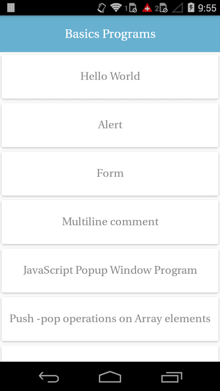 JavaScript programs app provides you the all basic to higher programs with output, so you can have your own guide in your pocket.