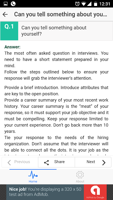 Deze app is uniek in dat het je helpt beheersen de meest gestelde vragen, bijbrengen u met het vertrouwen dat je nodig hebt om de moeilijkste interviews verduren. Dit zijn de meest voorkomende interview vragen van HR in een interview.