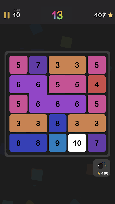 Tap and merge colourful squares to reach 13.