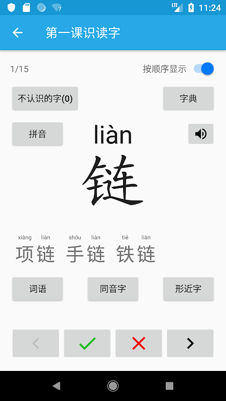 3. All characters come with Pinyin, words and pronunciation;
