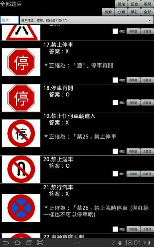 *Nieuwe functie: [Classificatie]. Niet-regelgevende vragen en meerkeuzevragen zijn onderverdeeld in 7 categorieën, afhankelijk van het vraagtype. De classificatiemethode is precies hetzelfde als de classificatiemethode voor het vraagtype van de Highway Administration van het Ministerie van Transport. Klik gewoon op 'Classificatie' in de linkerbovenhoek van de vragenbanklijst. (Er is geen classificatie voorzien voor signalen en mechanische kennis). (Bedankt voor de suggestie)