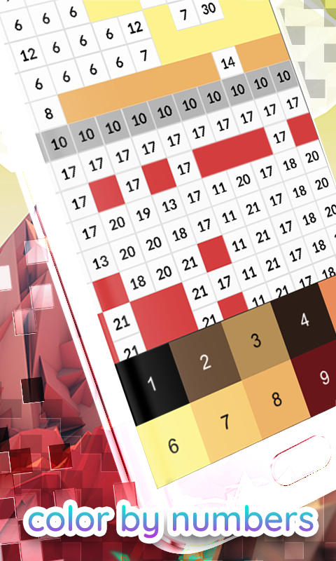 Tik op kleuren in het palet en kleur kleurcellen met overeenkomende nummers pixel voor pixel.