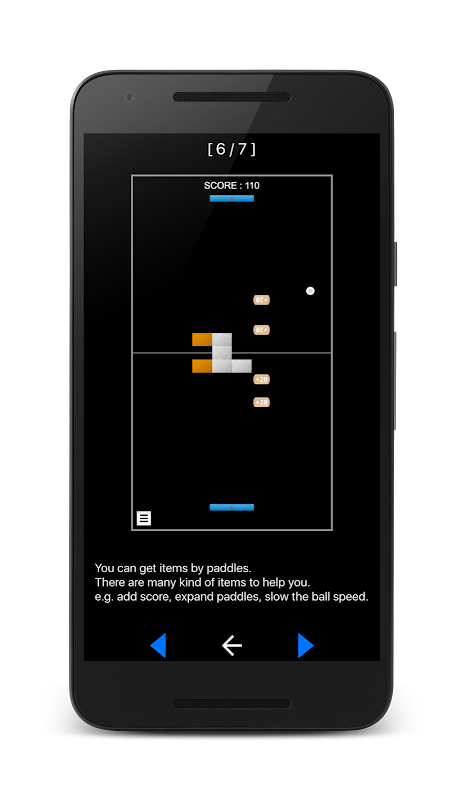 Sommige blokken te laten vallen nuttige items om het spel te spelen op voordelige wijze, zoals het vertragen van de balsnelheid, de uitbreiding van peddels breedte ...