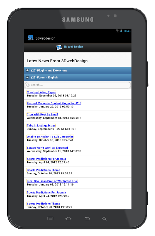 With this app you can follow the latest news about seo and webdesign from 3D Web Design website and forums, as well as news about our developed Joomla extensions, wordpress plugins and addons for other CMS. App can check automatically news in every category. It has options how often to check for news and if url's to be opened in the default device browser or in the app's browser.