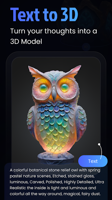 Typ gewoon iets en je woorden worden direct omgezet in 3D-modellen. Ideaal voor het maken van logo's, borden of andere creatieve ontwerpen.