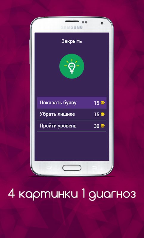 В игре все предельно понятно, Вам предоставляется возможность угадать диагноз по 4 картинкам. Количество букв в диагнозе заранее известно, что немного упрощает игру и делает её более насыщенной. За прохождение каждого уровня Вы будете получать монеты, за монеты, в дальнейшем, можно будет использовать подсказки.