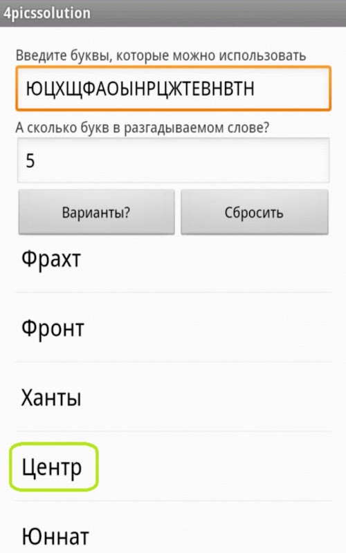 Вводите в приложение список имеющихся букв и длину слова, а в ответ - подходящие слова! Остается только пробежаться глазами по списку и ввести нужное.