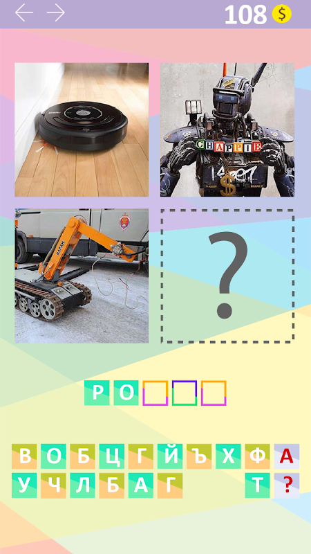 Изначально открыто только одно изображение. Чем меньше картинок Вы откроете, тем больше получите очков за отгаданное слово! Множество новых уровней на русском языке!