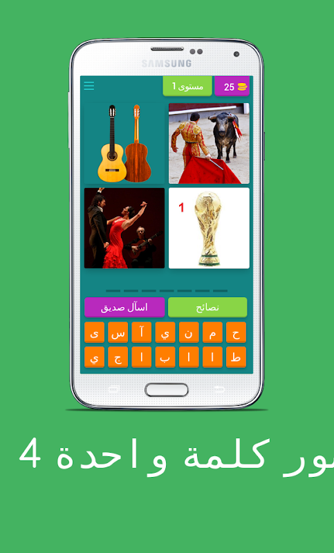 يحتوي تطبيق 4 صور وكلمة واحدة على صور غنية وشيقة .