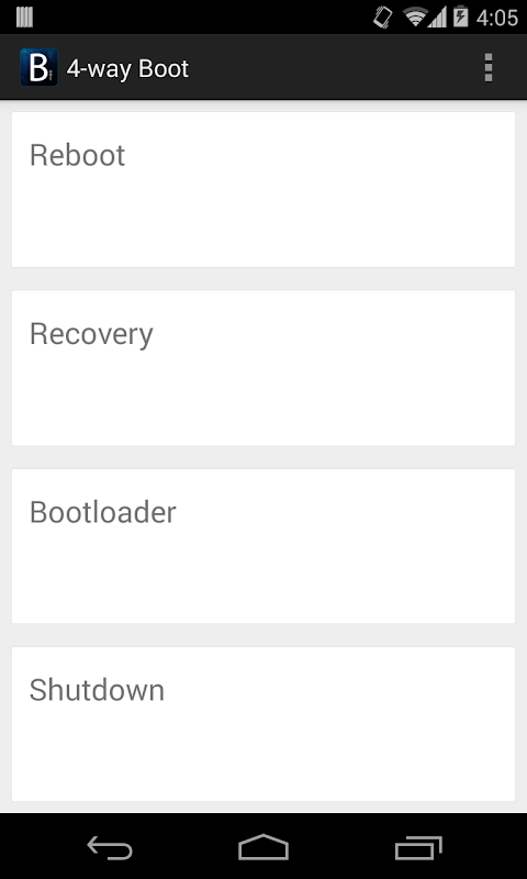 Then this app is for you,just a single click and you reboot your device, power off your device, or boot device into recovery or bootloader mode.