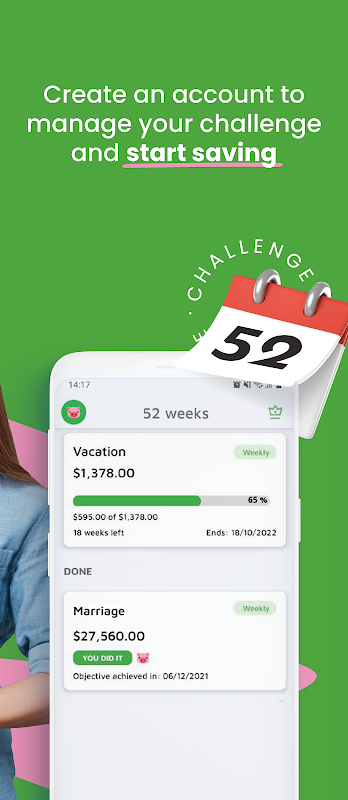 Deze app is gemaakt op basis van de populaire 52-weekse uitdaging om geld te besparen. Het idee van de uitdaging is heel eenvoudig en perfect voor diegenen die moeite hebben met plannen en vooral met geld besparen.