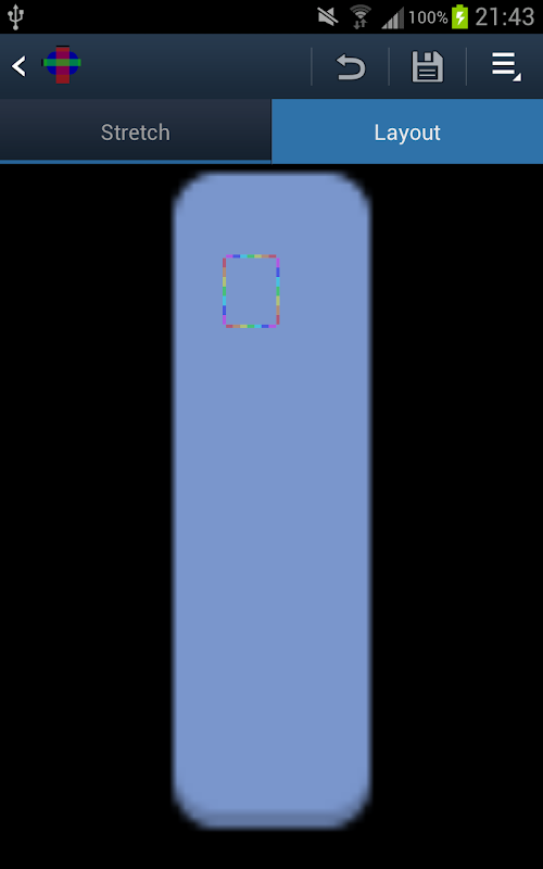 - Opslaan als .9.png bestand (gecompileerd of gecompileerde) of pak de rauwe PNG-bestand