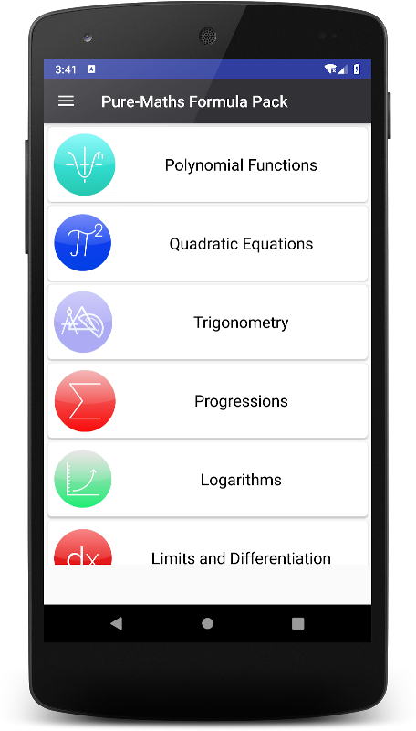 This app provides a comprehensive coverage about definitions and formulas from Pure Mathematics in G.C.E A\L combined mathematics with graphical representations.