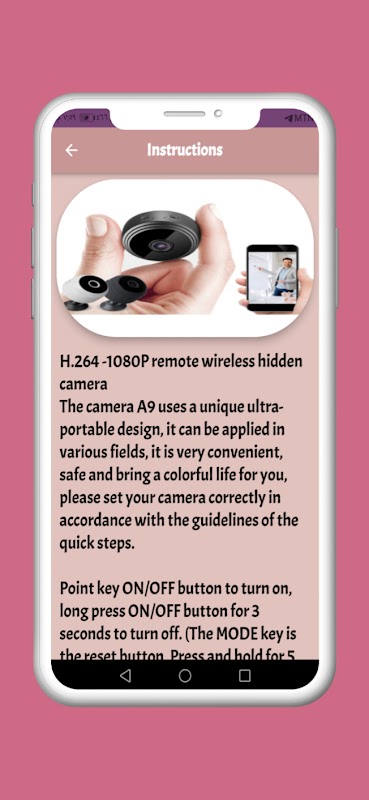 De A9 wifi-minicamera-app geeft je de specificaties en foto's voor de A9 wifi-minicamera