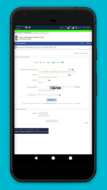 Download and view/read your Aadhar card in PDF format using Aadhar Card App