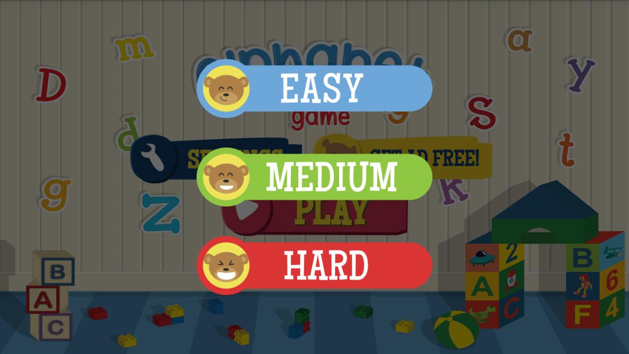 This kids matching game includes 3 difficulty levels to accommodate a wide range of ages. The game will adjust to fit your phone or tablet. Download the Alphabet Matching game for free.