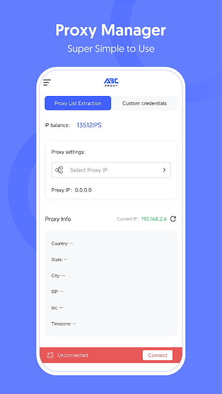 Installeer de ABCProxy-app vandaag nog om uw proxy's te beheren en toegang te krijgen tot favoriete websites met een eenvoudige verbinding met één klik.