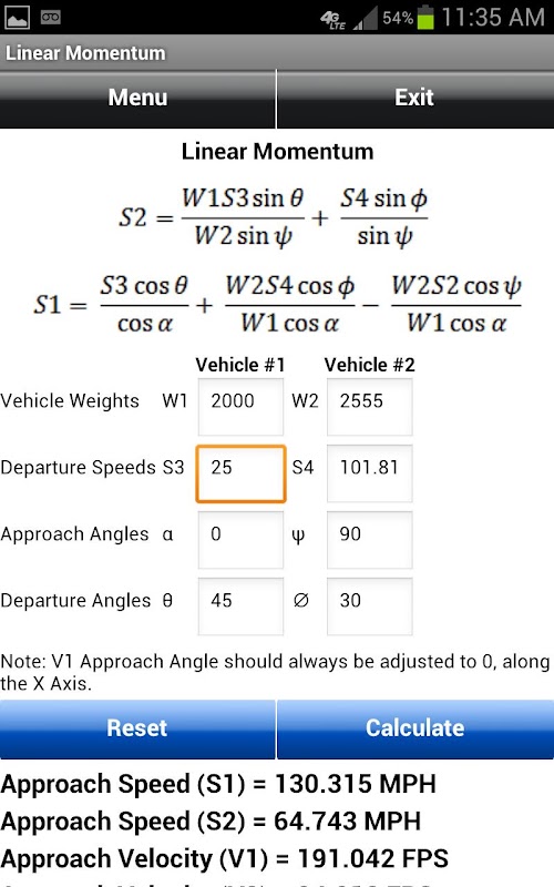 More Screen Shots available at http://onlinepoliceapps.com/android-applications/accident-reconstruction-calculator/