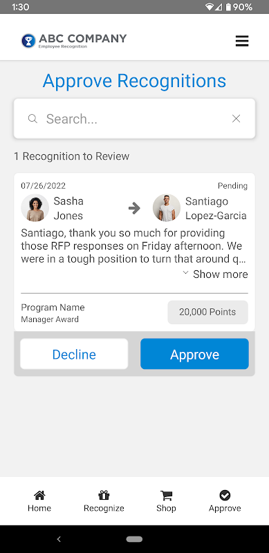 Opmerking: u moet een deelnemer zijn aan het programma voor werknemersherkenning van uw bedrijf en u moet via programmacommunicatie worden verzocht om deze app te downloaden.