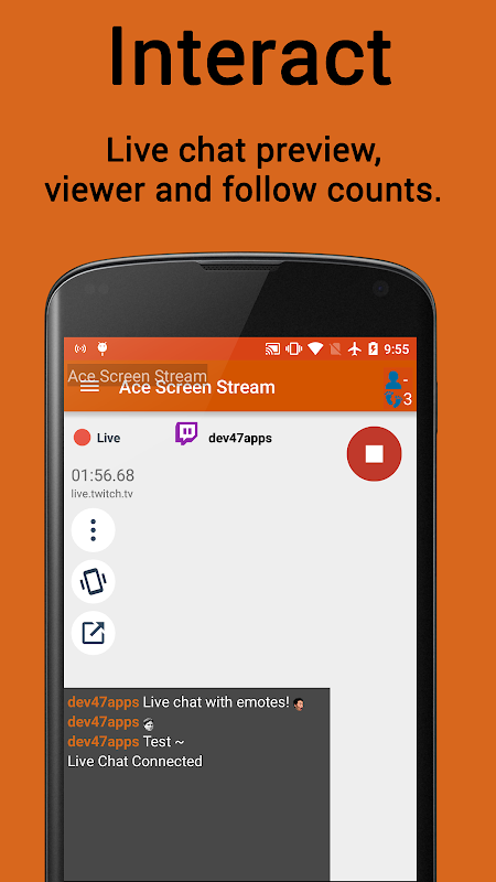 Ace Live Stream lets you live stream, or mirror to PC, your camera or entire screen.