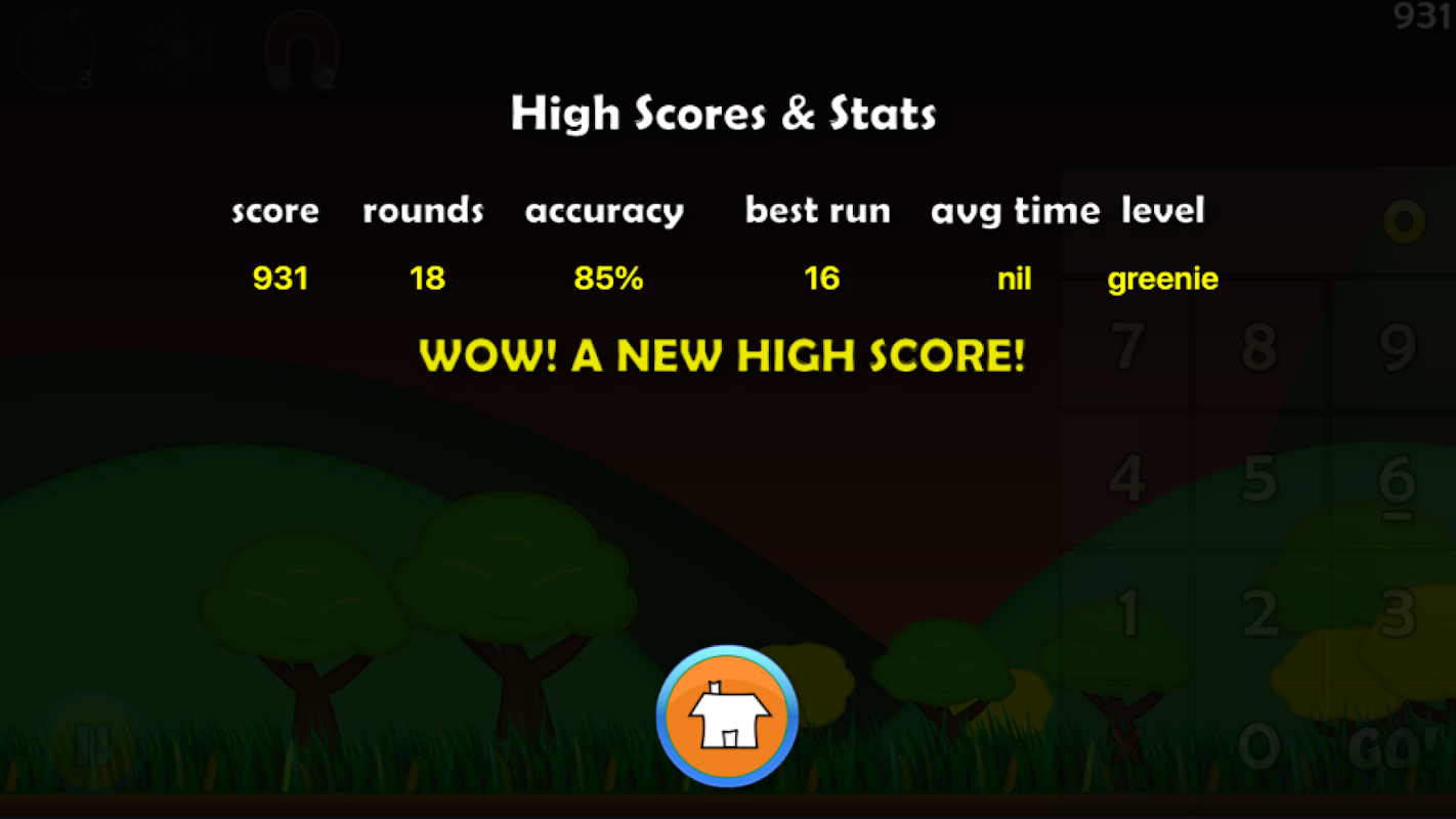 Add the numbers before they disappear! Adding Antics is a fun game to practice mental addition skills. Four levels of play (Tadpole, Greenie, Whiz or Guru), each of which gradually increase in difficulty, will challenge players of all ages and skill levels. But don't worry! Special items (Bomb, Time Freeze, and Magnet Merge) can help out when time is running short. Once you've been pushed to your limit (it happens to us all!) you will be given a summary of how well you did (longest running streak, problems solved, average completion time and percentage answered correctly). Achievements challenge you to hone your speed, accuracy, and gaming skills at every level! Doing math has never been so fun!