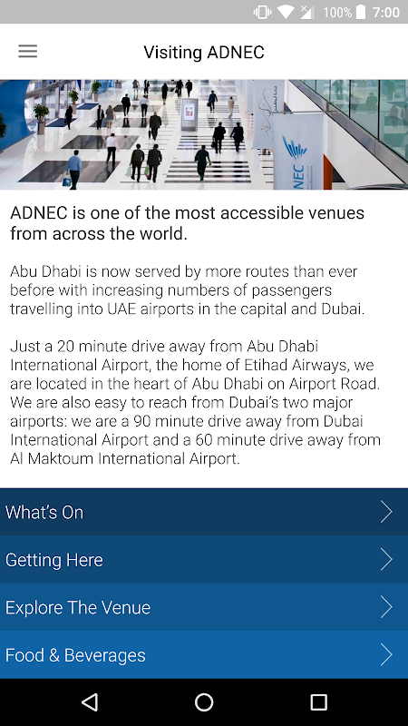 Het Abu Dhabi National Exhibitions Center (ADNEC) Android-applicatie