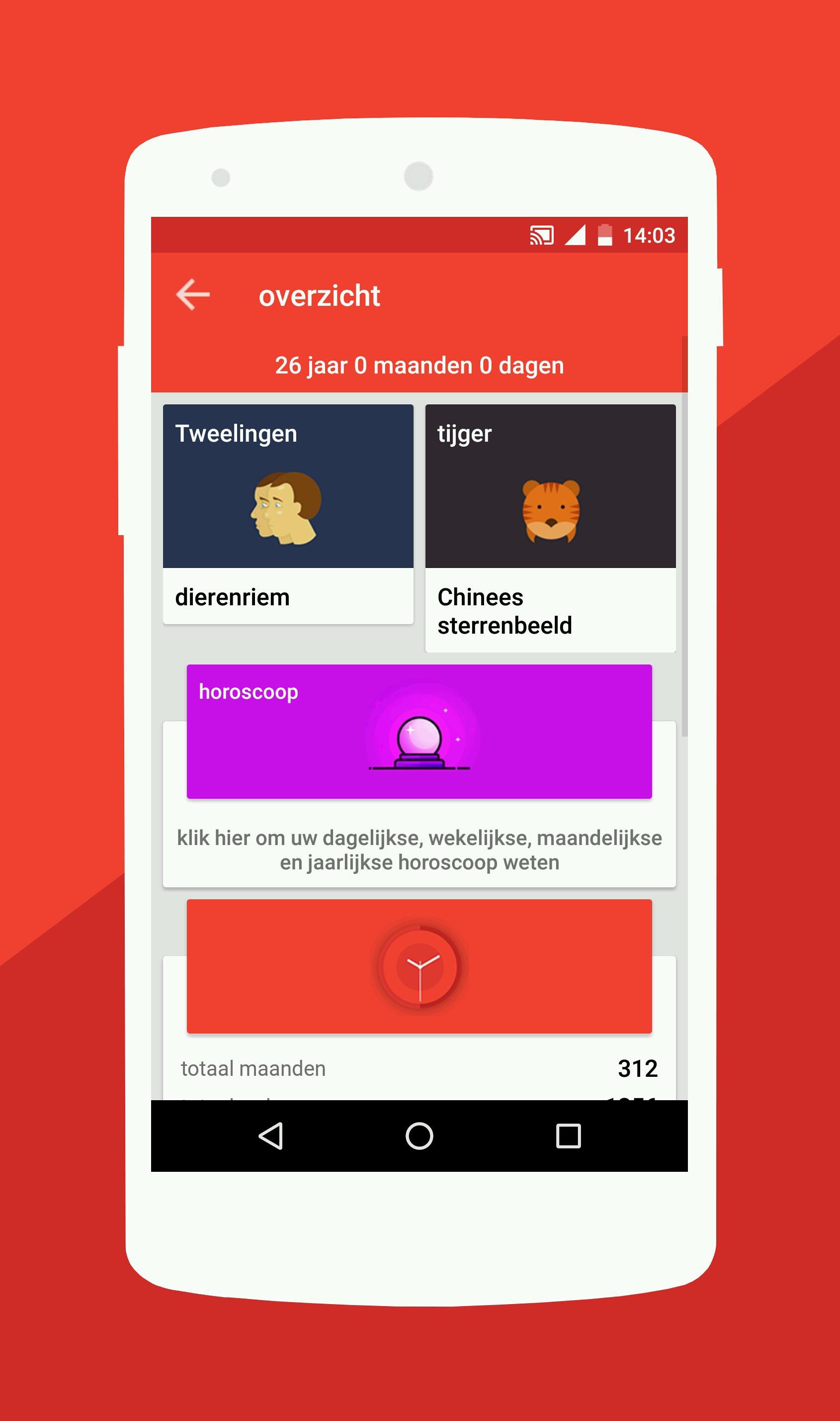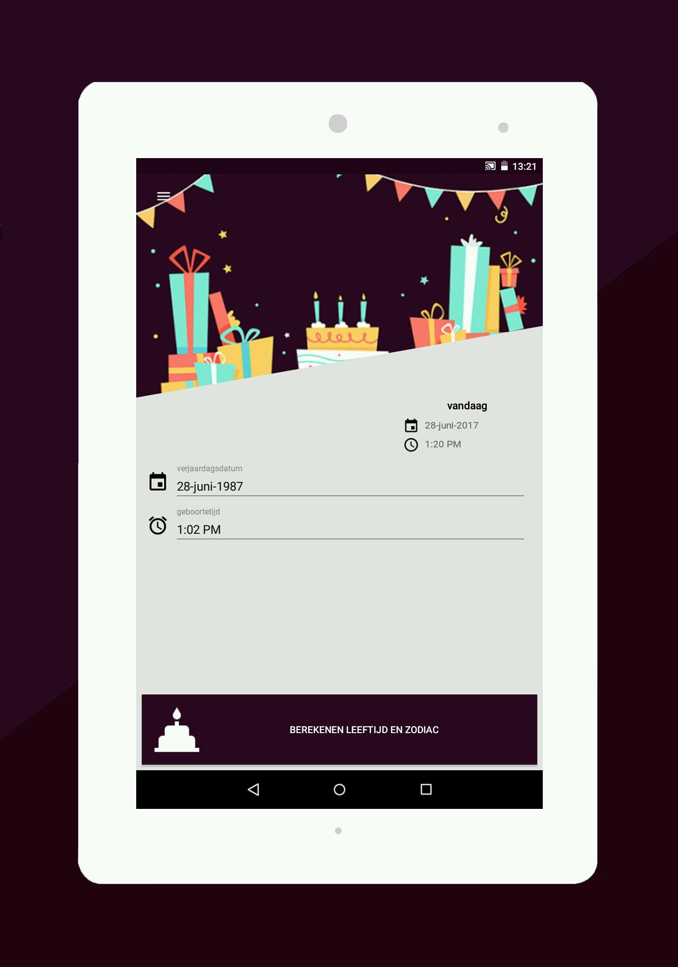 Leeftijd Calculator is een eenvoudige en elegante applicatie. Leeftijd calculator vertelt uw exacte leeftijd in jaren maanden en dagen. Leeftijd calculator berekent ook uw sterrenbeeld en Chinese geboortejaar. Leeftijd calculator geeft ook de weekdagen van uw volgende vijf verjaardagen. Leeftijd Calculator is ontworpen met een kleurrijk design en de brede waaier van toestellen te ondersteunen. Bedankt voor uw steun en we moeten uw voortdurende steun in de toekomst.