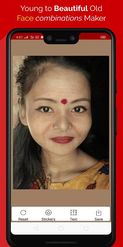 Je kunt ook controleren hoe je gezicht eruit zou zien met een paar rimpels hier en daar. Je kunt ook een aantal realistische "oude gezichten" fotostickers over je gewone foto's toevoegen en ze in een oogwenk omzetten in "grappige foto's".