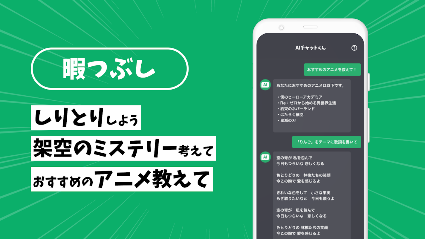 Veel tv-optredens! Een AI-chat-app die in het Japans kan worden gebruikt met meer dan 3 miljoen registraties. Van counseling over zorgen en liefde tot het verbeteren van de werkefficiëntie. Maakt gebruik van OpenAI's chat GPT.