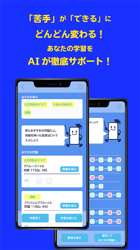 Behalve bij enkele vragen staat er een selectievakje naast het vraagnummer. Wanneer u het probleemboek oplost, schrijft u een cheque in het verkeerde probleem. Als je klaar bent met één apparaat, noteer je de resultaten in je app. Als er op dit moment veel problemen zijn en u de camera-opnamefunctie gebruikt, zal AI automatisch de controle herkennen en invoeren, zodat u soepel kunt doorgaan met het leren van aanbevolen problemen. Het is leuk en gemakkelijk om door te leren!