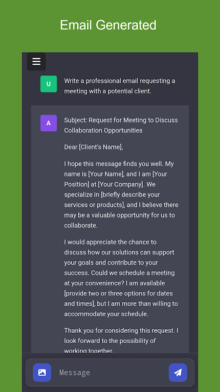 Perfect voor professionals, studenten en iedereen die zijn e-mailcommunicatie wil verbeteren. AI Email Generator bespaart tijd en garandeert kwaliteit in elke e-mail. Of je nu een informeel bericht of een formele brief schrijft, deze app biedt de juiste woorden om een geweldige indruk te maken.