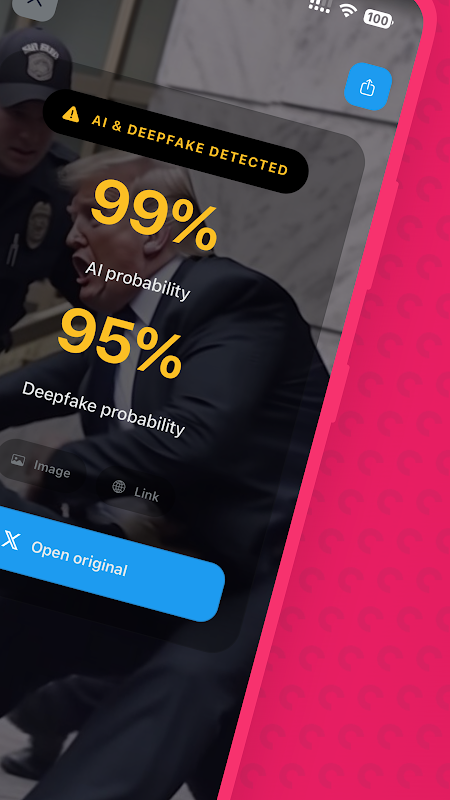 Detecteer door AI gegenereerde afbeeldingen en video's. Analyseer direct links naar sociale media.