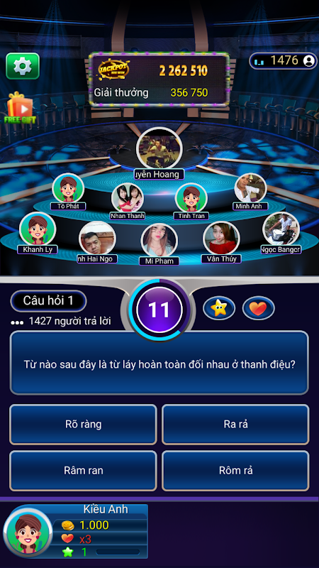 Điều đáng nói ở đây mà đấu trường Online này đem lại chính là có hàng trăm nghìn người chơi cùng trả lời với bạn. Cùng giải trí, cùng test IQ và cùng vượt qua 10 mốc câu hỏi hóc búa.
