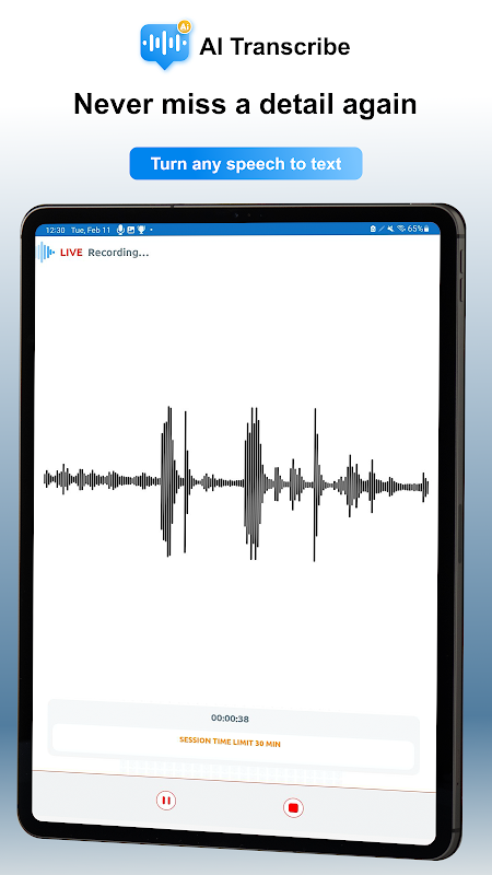 Vang, transcribe en vat al uw audiotapes moeiteloos samen met AI - Transcribe Speech to Text, uw favoriete app voor naadloze audio transcriberen en samenvatten. Of u nu zakelijke vergaderingen bijwoont, met professionals overlegt of in een leeromgeving bent, deze AI-assistent helpt u georganiseerd en productief te blijven!