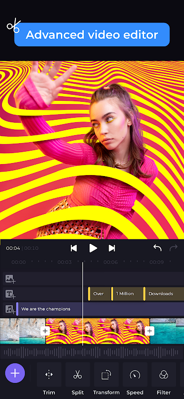 Bewerk en knip media, voeg muziek toe, maak AI-video's, intro's, outro's, animaties en meer.