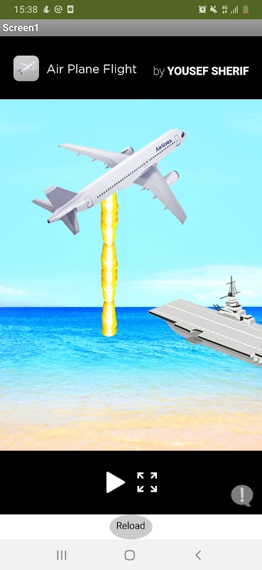 Airplane Flight is een app waarbij een vliegtuig neerstort en terwijl het vliegtuig valt, verandert het van richting als het het vliegdekschip op zee raakt!