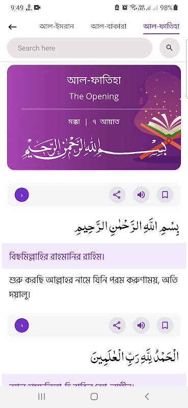 ▪︎Bengaalse Uitspraak zowel Surah als Para bekijken.