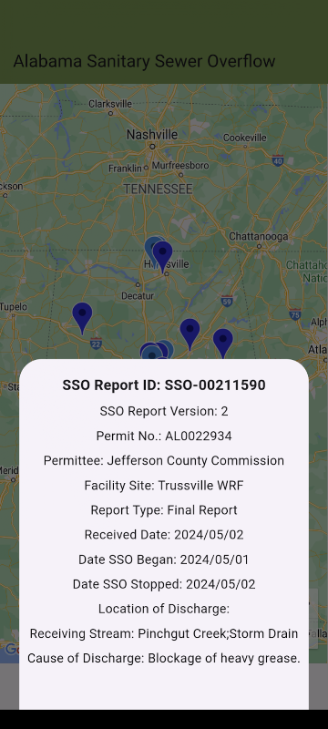 - Historische gegevens en trends: verken historische gegevens om patronen en frequentie van SSO's in verschillende delen van Alabama te observeren. Deze functie is van onschatbare waarde voor onderzoekers en beleidsmakers die toekomstige gebeurtenissen willen begrijpen en beperken.