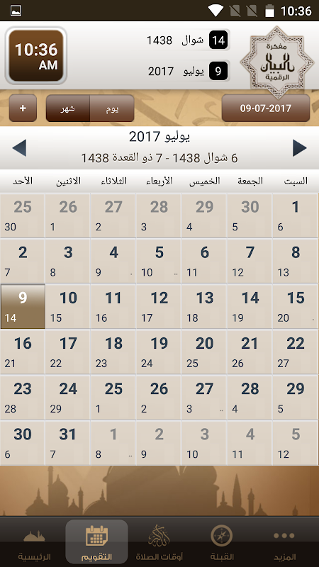 - Hijri en Gregoriaanse datumkalender, met afspraakservices en waarschuwingen.